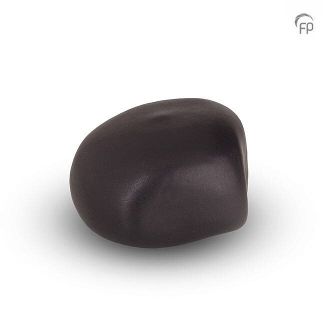 Het knuffelkeitje onderscheidt zich door zijn natuurlijke vorm en zachte, matte oppervlakte. Hierdoor ligt het prettig en vertrouwd in de palm van de hand. Dit maakt het mogelijk om een dierbare symbolisch met zich mee te dragen, waar en wanneer dat gewenst is. De matte zwarte kleur benadrukt het ingetogen, tijdloze en troostende karakter van dit aandenken.