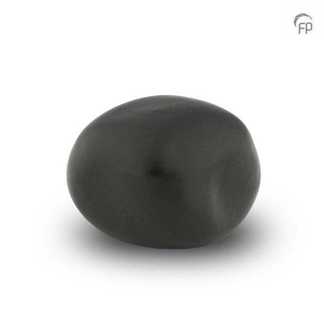 Het knuffelkeitje onderscheidt zich door zijn natuurlijke vorm en zachte, matte oppervlakte. Hierdoor ligt het prettig en vertrouwd in de palm van de hand. Dit maakt het mogelijk om een dierbare symbolisch met zich mee te dragen, waar en wanneer dat gewenst is. De legergroene kleur versterkt het aardse, rustige en geborgen karakter van dit aandenken.