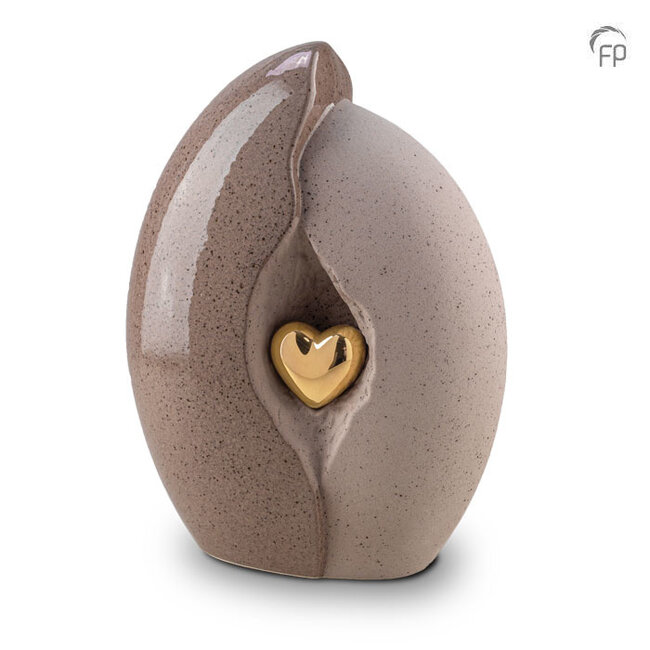 Het resultaat is een uniek en ambachtelijk vervaardigd product, waarbij geen enkele urn exact hetzelfde is. De combinatie van natuurlijke bruintinten met subtiele goudkleurige details zorgt voor een warm, tijdloos en kleurrijk karakter.
