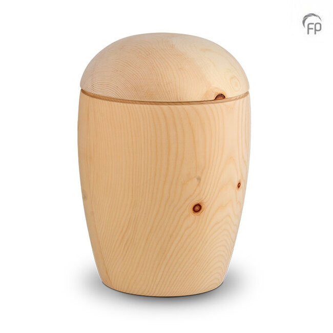 Deze houten urn onderscheidt zich door haar uniciteit. Het Zwitserse grenenhout wordt met zorg uitgezocht en volledig met de hand bewerkt, waardoor iedere urn een eigen karakter heeft. De natuurlijke uitstraling weerspiegelt verbondenheid met de natuur en maakt deze urn tot een warm en persoonlijk gedenkobject. Duurzaamheid speelt hierbij een centrale rol, zonder concessies te doen aan kwaliteit en afwerking.